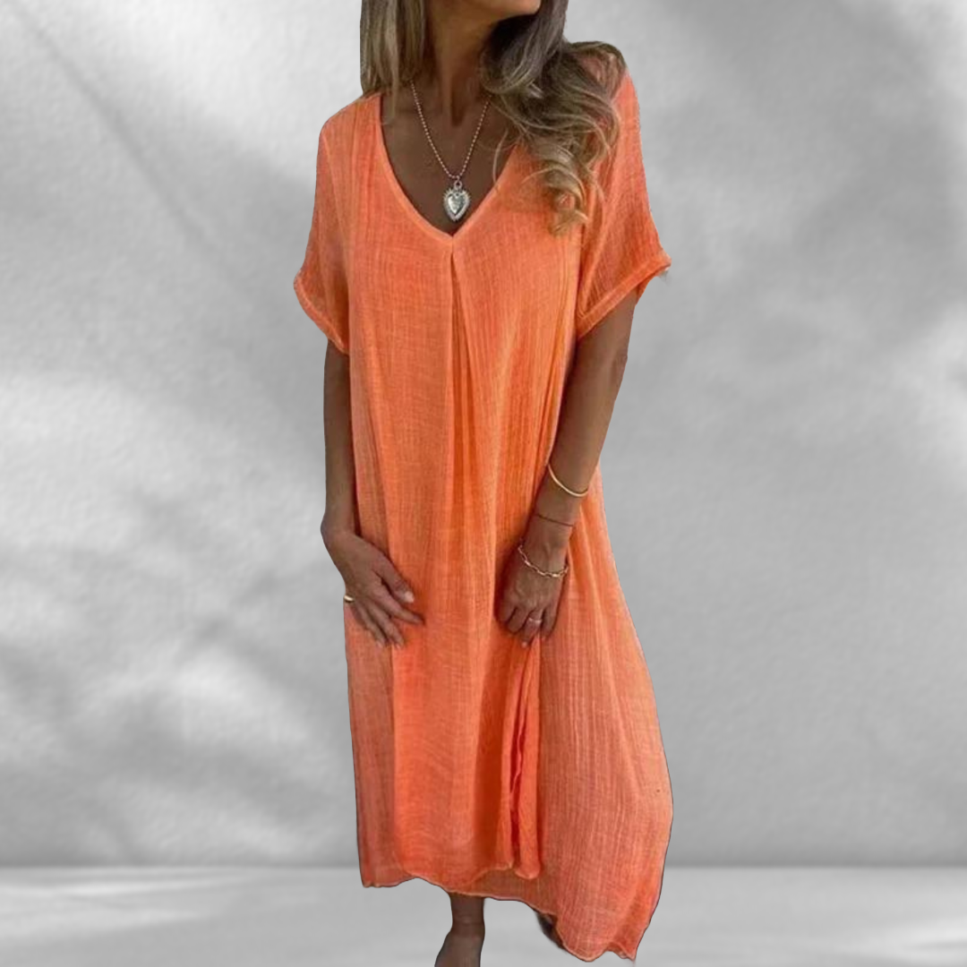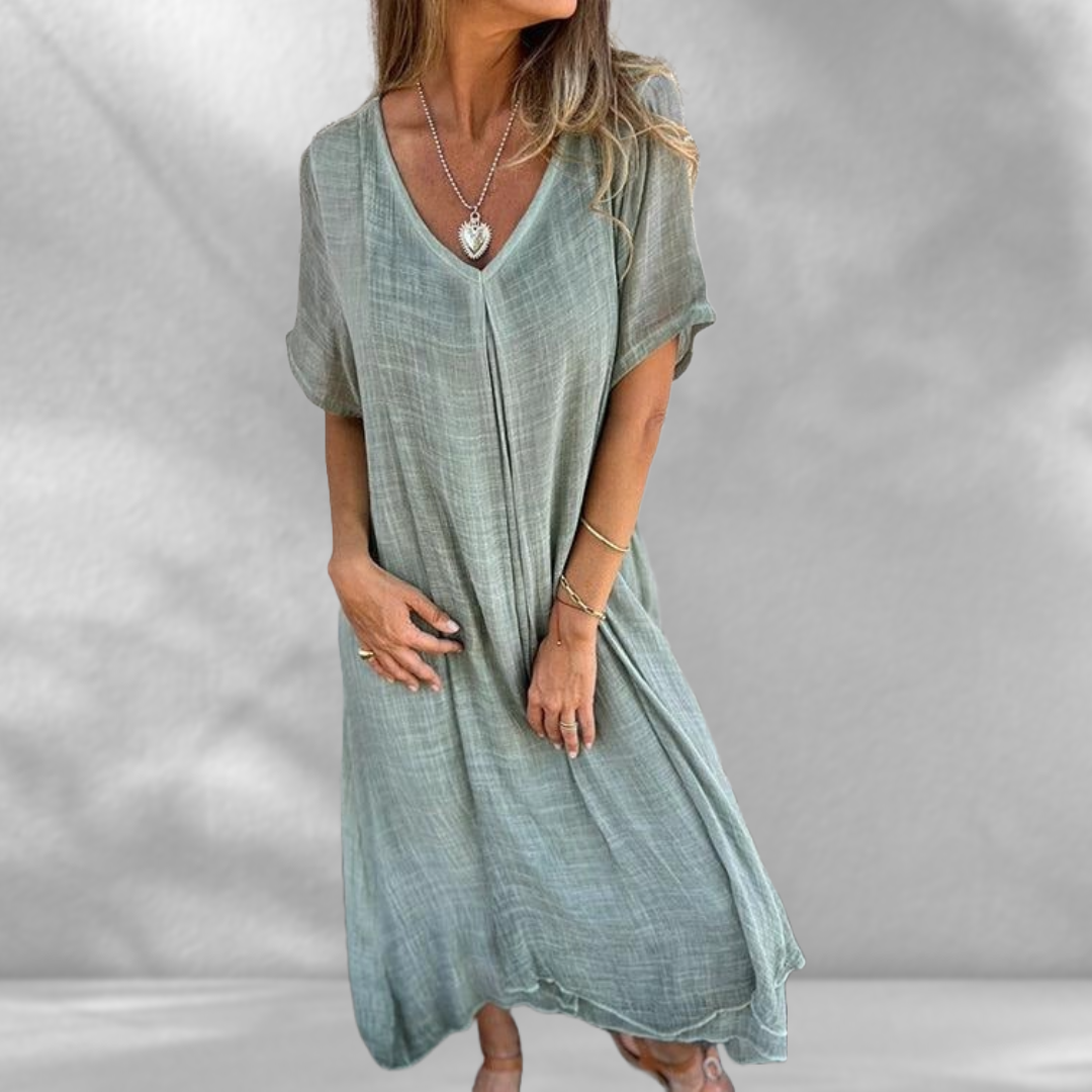 Lasciati avvolgere da un’eleganza leggera e naturale. Ordina oggi la tua Liona | Abito Estivo Boho in 100% lino biologico — e scopri come sentirti bella, libera e sofisticata in ogni istante.